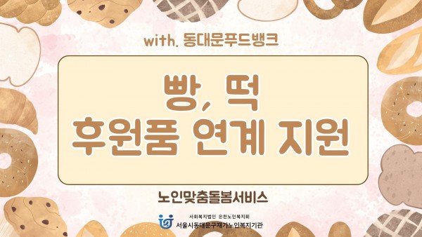 [노인맞춤돌봄서비스] 2026년 1~3월 후원품 연계 지원 페이지 정보 작성자 은천노인복지회 작성일26-04-09 16:17 조회7회 댓글0건 관련링크 이전글 다음글 목록 답변 본문 '동대문푸드뱅크'로부터 매주 월요일 빵을 후원 받고 있으며, 생원지원사를 통해 어르신들께 빵을 전달해드리고 있습니다. 이전글 다음글 목록 답변
