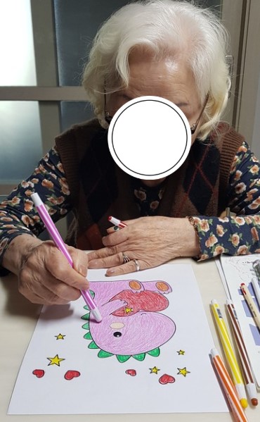 도안 색칠하기 활동을 통해 어르신의 인지 기능 유지와 정서적 안정 도모를 지원하고 있으며, 앞으로도 다양한 인지활동 프로그램을 지속적으로 제공할 예정입니다.